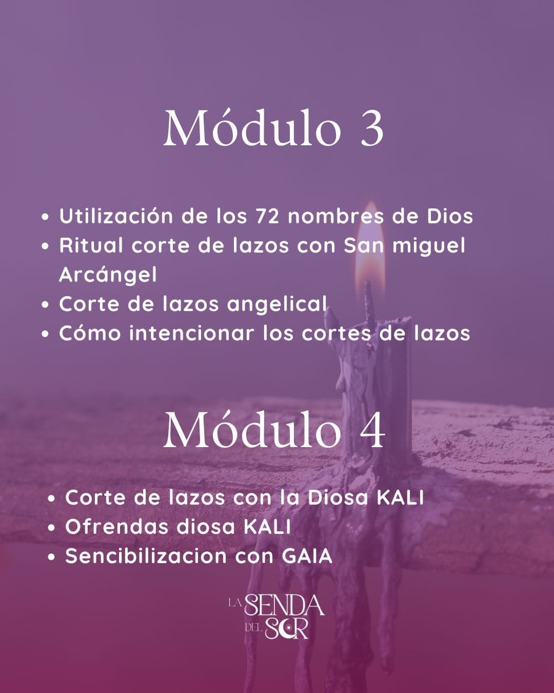 Es un miedo muy común y totalmente válido. Por eso, el Módulo 1 hablamos del espacio sagrado. No enseñamos a invocar entidades desconocidas. Te enseñaremos a crear un 'Espacio Sagrado' seguro, donde solo la energía de alta vibración (amor, paz, luz) puede entrar. Aprenderás a cerrar tus rituales correctamente para que te sientas siempre protegido/a."