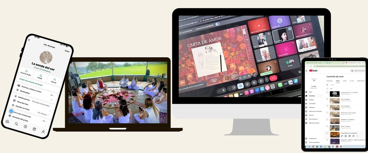 Mentorías en vivo, rituales, talleres de sanación y recursos exclusivos dentro de una comunidad que camina el mismo proceso.